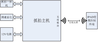測速抓拍系統(tǒng)主要由高清抓拍一體機、平板測速雷達、鋰電池、無線模塊、便攜控制終端等組成,可以滿足正常的測速抓拍需求。雷達工作時將檢測到的車輛速度傳送給抓拍相機,相機接到雷達發(fā)給的信號觸發(fā)抓拍,將抓拍的照片送到處理單元存儲并通過顯示單元實時顯示。